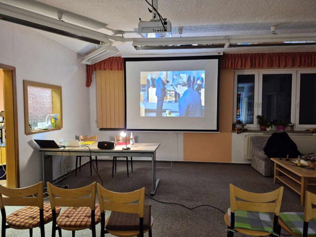 Zweite Lesung, diesmal in Themar. Dort waren wir vor einigen Jahren schon einmal mit der Perlenkette. Wir fahren zur Alten Orthopädie, eine ehemalige Mühle, die jetzt Vereinshaus ist und direkt an der Werra liegt. Drinnen sind Geschenke gestapelt, eine von vielen Aktionen, die das Bürgerbündnis macht. Besonders beliebt das Rentnerfrühstück, das alle zwei Wochen stattfindet. Vor Beginn erscheinen zwei Polizisten, der Bereichskontaktbeamte des Orts ist dabei. Da die Veranstaltung unter Schutz steht, wollen sie nach den Rechten sehen. Es ist ruhig, wir fragen, was die häufigsten Einsatzfälle in Themar und Umgebung seien. Love Scamming und der Enkeltrick, erzählen die Beamten, man habe eine Abmachung mit der örtlichen Sparkassen-Filiale getroffen: Will eine ältere Bürgerin oder Bürger auffällig hohe Geldbeträge abheben, werden die Beamten informiert. Eine Anwesende erzählt, was ihr heute passiert ist. Ein Mann von Telekom habe nach Glasfaser gefragt und später nach ihrer IBAN, ihr sei das verdächtig vorgekommen. Der Beamte wird hellhörig und lässt sich eine Beschreibung geben und erklärt, ja, den Mann habe er kürzlich erst draußen am Markt gesehen. Mit diesen Worten macht er los.